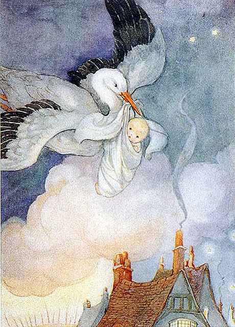 Tabii bir de herkesin bildiği şu bebekleri leylekler getirir hikayesi var. Artık şimdiki veletler buna gülmekle kalmaz, size ayrıntılı olarak bebeklerin nasıl meydana geldiği hakkında power point sunum bile yaparlar da, şaşar kalırsınız. Bir kere en başta eski Yunanda bu hikayenin bir Hera versiyonu var. Pigme Kraliçe Gerana Hera tarafından leyleğe dönüştürülüyor ve oğlunu çalmaya çalışıyor. Gerçi burada bir crane ve leylek karmaşası var gibi. Bazı kaynaklar craneden söz ediyor ki bu iki kuş bildiğim kadarıyla benzer olmakla birlikte farklı ailelerden. Her neyse bizim hacı leylekler daha güzel bence. Crane’lerin de muhteşem olmadığını söylemiyorum bu arada. Hans Christian Andersen’in leylekler masalının da bu mite çok faydası olmuş. Alman Folkloruna göre bebekleri bataklıklar ya da mağaralarda bulan leylekler bir sepetle evlere getirir, ya annelerine verir ya da bacalardan içeri bırakırlar. Noel Baba gibi yani, bu bacadan hediye şu bu bırakma adeti de pek komik, bu evlerin bir de kapısı var kardeşim ! Bebek isteyen evlerin pencere pervazına şekerleme asmaları adettendir. Leyleklerin göç uçuşunu dokuz ayda bitirmeleri de bu bebek olayında bir etken olabilir. Bu arada Amerika’da Afroamerikan ailelerin çocuklarına bazen beyaz çocukların leylekler tarafından getirildiği, siyah çocuklarınsa akbaba yumurtalarından doğduğu söylenirmiş. İnsanın saçını başını yolası geliyor.