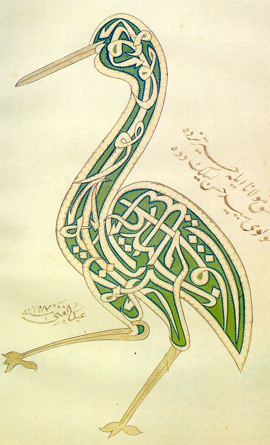 Leyleklerle ilgili sanatsal çalışmalar da pek çok; ben bir ikisini söylemeden geçemeyeceğim. Leylek Dede hatları çok hoşuma gider örneğin. Leylek , Süleyman Peygamberin Tekke-i Murgan, kuşlar tekkesinin şeyhidir. O yüzden Sufiler hat sanatında leyleği kullanmışlardır. Topkapı Sarayında bulunan Hattat Hasan Leylek Dedenin ( Yenikapı Mevlevihanesi Dedelerinden ) yürüyen leylek şeklindeki yazısına bir sonraki seferinizde dikkat edin. “Aşk-ı Mevlana ile Hayret-zede / Mevlevi Seyyit Hasan Leylek Dede”