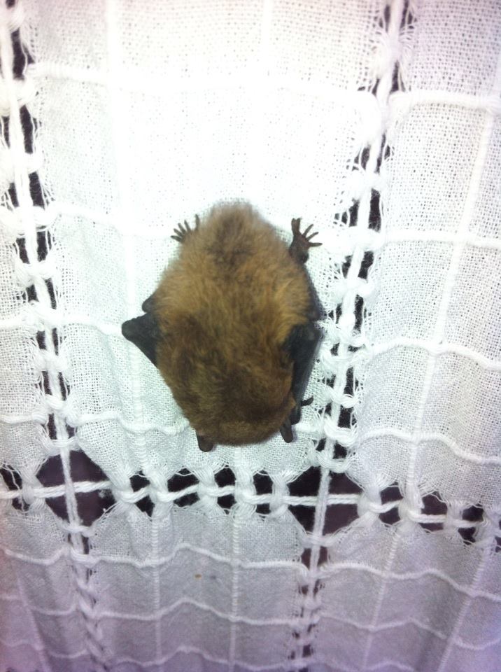 Tüm sitede en sık rastladığımız kuşlardan biri yarasalar. Hemen hemen her evin çatısında yarasa var. Evde olmadığımız kış aylarında bacalardan içeri girip, evin içinde ölebiliyorlar. Bu çok acı oluyor. Bir de gübrelerine balkonlarda rastlıyoruz. Hatta bu gübrelerin çok yararlı olduğu söylendi, o yüzden toplayıp çiçeklere veriyoruz. Bu yıl bir tanesi ölü, diğeri baygın iki yarasa buldum evde. Biri için yapacak bir şey yoktu. Diğerini dışarı çıkarıp yanına biraz su döktük, suyu içip uçtu. Çok sevimli hayvanlardı. Aşağıda baygın perdeye asılmış olanı görüyorsunuz.