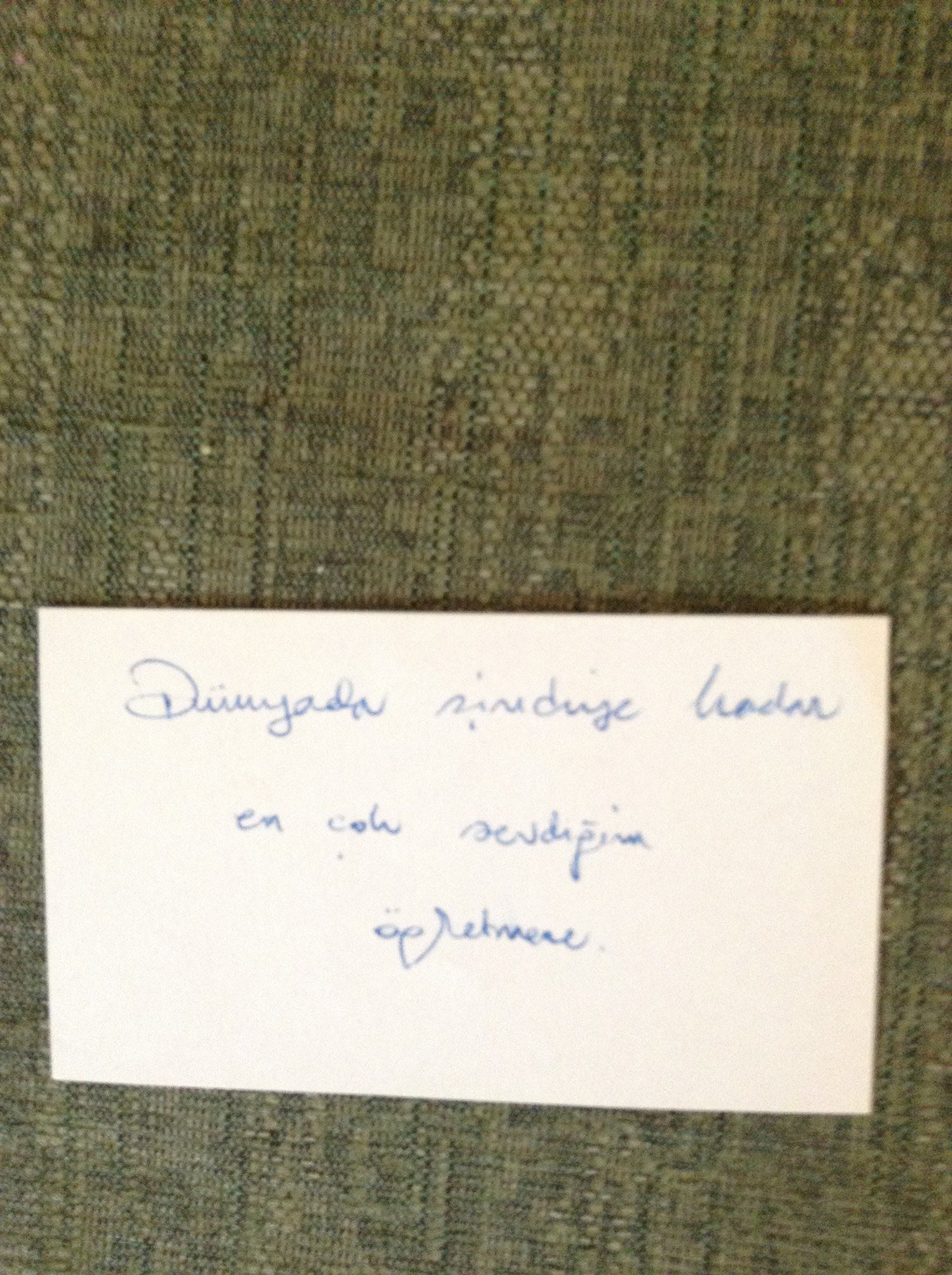 Aşağıdaki notun yanında mutlaka bir de hediye vardı. Bir Öğretmenler Günü çiçeği belki 🙂 Sevgili kocam müfettişken turneye giderken de bana pek çok not bırakmış, ” Sana hep aşık, sana hep hasret gidiyorum yine” diye başlayan bir tanesi Snoopy’li kağıtlara yazılmış örneğin.