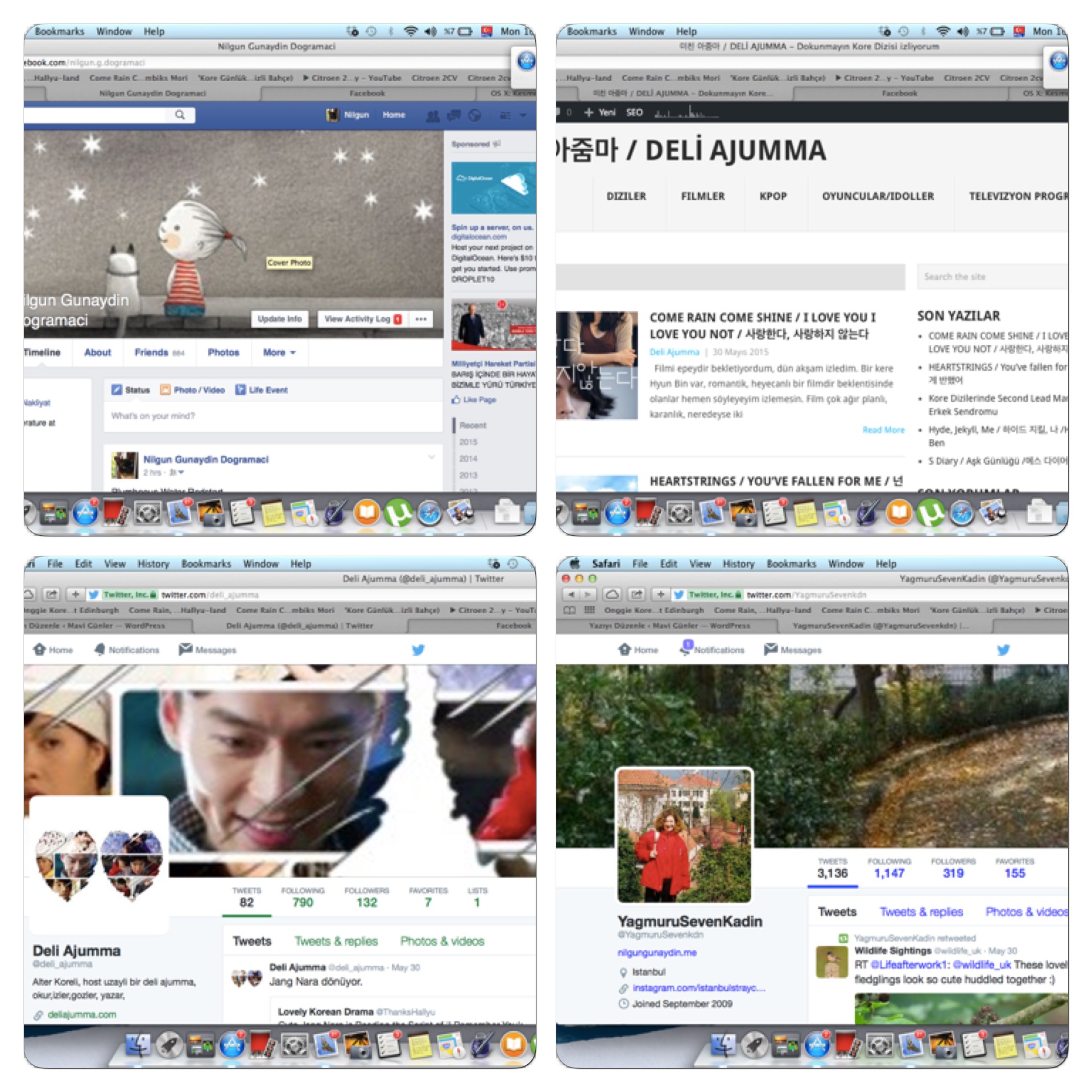Pek öyle görünmese de, ben dışa dönük gözüken içe dönük bir kişiyim. Dolayısıyla, İnternet, sosyal medya uzaktan sosyalleşme açısından tam bana göre. Bir de kedi gibi meraklıyımdır. Stalker ( ben buna iz sürücü filan yerine musallat sözcüğünü bulmuştum bir zamanlar ) olmamak için zaman zaman kendimle savaştığımı bilirim. Kova burcu da her yeni şeye atlar bildiğiniz gibi. Sonuç olarak hemen hemen her sosyal medya mecrasında bir iki hesabım olması kaçınılmaz oldu. Bir kendi arkadaşlarım, bir de öğrencilerim için açtığım iki Facebook hesabım, ( Oyun için açtığım iki üç sahte hesabı saymıyorum ) biri bu olmak üzere, bir de Kore Dizi ve filmleri için açtığım iki blogum, biri özel, diğeri Kore fanlarını topladığım iki Twitter hesabım var. Tabii Pinterest’te, Linkedin’de, yine iki hesapla Instagram‘da ve şu anda aklıma gelmeyen bir dolu ıvır zıvır yerde de varım.