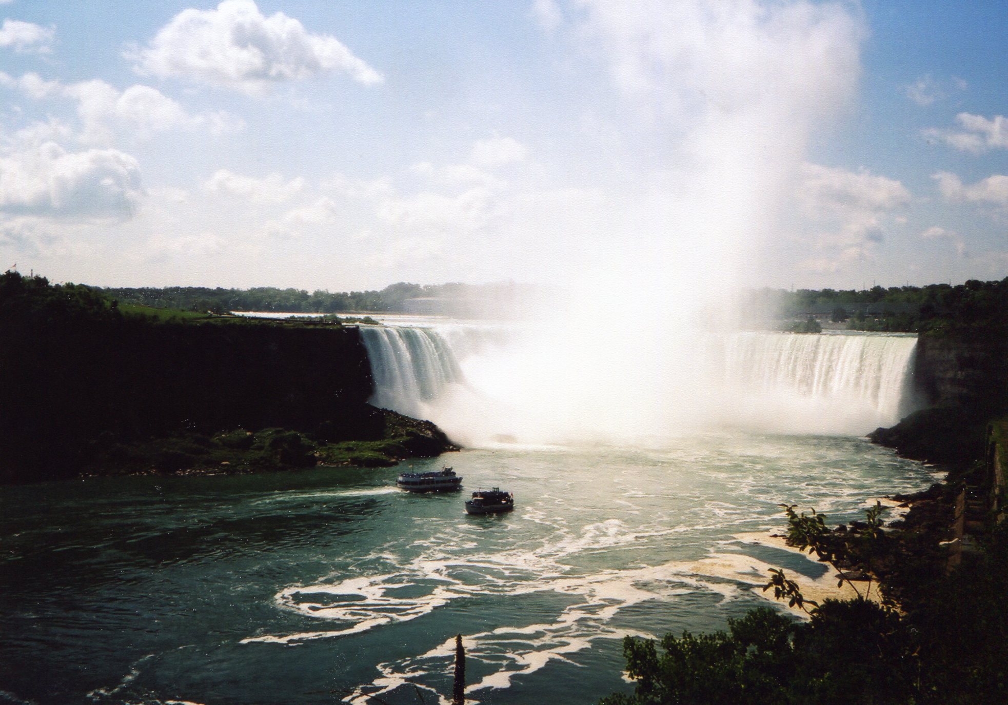 Sabah yine erkenciydik. Yolumuz uzun. Niagara şelalesine gideceğiz. Yolda arabayı birlikte kullandık Trafik çok hızlı akıyor. Hız sınırlamasına ve yüksek cezalara rağmen böyle oluşu bizi şaşırttı. Aynı Türkiye.. Bastırıp gidiyor herkes. Öğlene doğru Niagara Falls kentine vardık. Müthiş kalabalık ve her yer turistler için şaşaalı bir şekilde düzenlenmiş. Niagara Şelalesi Ontario bölgesinin başlıca elektrik kaynağı. Niagara Falls ve karşıda Amerika tarafında gözüken Amerika çavlanı birbirlerine nispet yapar gibi akıp duruyorlar. Kıyıya dizilmiş yüzlerce kişi hayranlıkla seyrediyor. Çok geçmeden biz de onlara katıldık. Her noktadan farklı bir görüntü alınıyor. Ben de fotoğraf makinemle tespit ettim zaten. Ara sıra üstümüz başımız sulardan ıslandı. İnsanlar gülüşerek kaçışıyorlar. Kıyıya yerleştirilmiş dürbünlerle daha iyi görüntü almak mümkün. Yağmurluklarıyla bir minik gezinti gemisine binen seyirciler çavlanın kıyısına kadar gidiyorlar. Akıntıdan gidebildikleri kadar yani. Başka bir grup ise çavlanın hemen kenarından seyrediyor. Aklıma hemen Marilyn Monroe’nun o ünlü filmi geldi. Bizim neyimiz eksikti ? Ama saat 11’de 15.30’a bilet kesiyorlardı. O yüzden vazgeçtik. Sabrımız bu kadarına müsait değildi. Hediyelik eşya mağazalarını gezip yemek yeme safhası. Bu da ritüel oldu. Her yerde kızılderili objeleri, Maple syruplar, Niagara ile ilgili objeler. Yüksükler, çanlar, tablalar hani o bildik düzende Niagara resimli her bir şey. Kızılderili müziği CD’leri var, pek hoş, bir taraftan da çalıyor. Ama çok pahalı değer mi, değmez mi diye düşünüyorum ve almamaya karar verdim. Arkadaşlara bazı ufak tefek hediyeler aldık.
