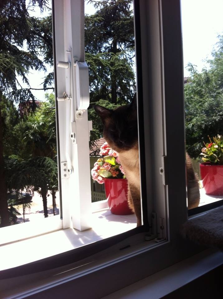 Miço’yu kısırlaştırmadım. Kedileri sokaklardan toplayıp kısırlaştıranları, ev kedilerini koku bıraktığı ve kızıştığı için kısırlaştıranları eleştirmek istemiyorum, onların tercihi. Ama bu tip eylemlerde aklıma Maymunlar Cehennemi filmi geliyor hep. İnsanların kafeslere konup, kısırlaştırıldığı, tıbbi denek olarak kullanıldığı ve bizim aynı maymunlara , diğer hayvanlara yaptığımız gibi davranıldığı ve herkesi dehşete düşüren o kareler. Ve kusura bakmayın ama ben hayvanlar insanlar için var, tabii ki bizim için denek olacaklar, çoğalınca sokaklarda ezilip ölüyorlar, onları kurtarmanın yolu bu, çoğalıp da sokaklarda ölsünler mi, ya da onları yemezsek ölürüz düşüncelerine katılmıyorum. Bir türlü vejetaryen olamamış bir kişinin söyleyeceği şeyler değil bunlar belki ve şu yazımda da söz etmiştim bu konudan, ama onları doğal ortamlarından uzaklaştırarak evlere kapatmak, onların yaşam alanlarına yayılıp onlara yaşama alanı bırakmamak, dahası hepsine kötü davranıp akla hayale gelmez işkenceler yapmak , fazla geldiler diye uyutmak ki bu pek çok modern dediğimiz ülkenin genel geçer uygulaması, hep bizim içimizdeki kötülükten, empati yapamamamızdan. Ben de zorunlu olarak Miço’yu doğal hayattan uzaklaştırdım ve bu beni hep üzecek. Öte yandan sokaklar da kedicikler için güvenli değil artık. Şimdilerde sonradan Saklıköy’de aldığımız evde hiç olmazsa bahçeye çıkabildiğini, başka kedilerle tanışabildiğini- gerçi erkek olanlardan hiç hoşlanmayıp kovalamak istiyordu doğal olarak- düşündükçe mutlu oluyorum.