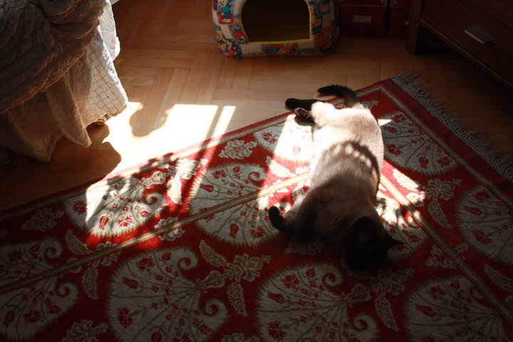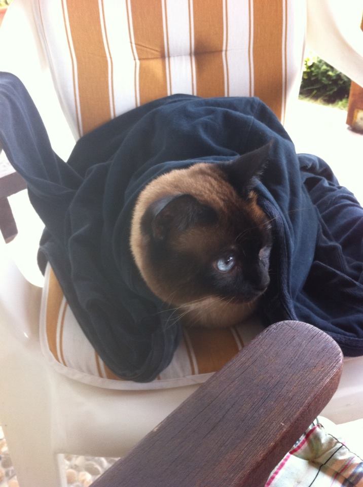 Miço çok üşüyen bir hayvandı. Belli zamanlarda kansız olmasının da bunda etkisi olabilir, genetik kodlarının da. Hemen battaniye içine girerdi. Bazen ben üşümesin diye üstünü örterdim.