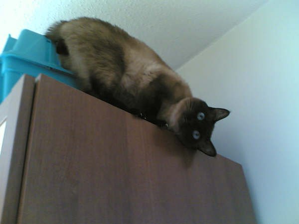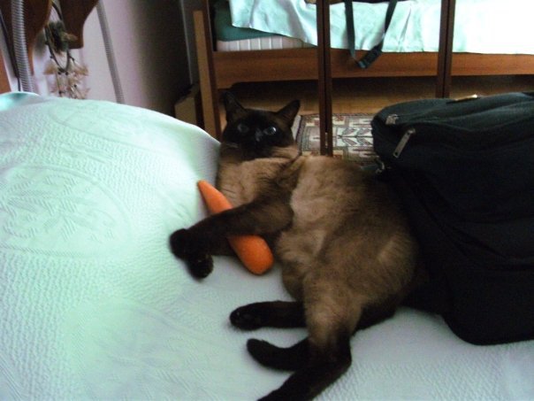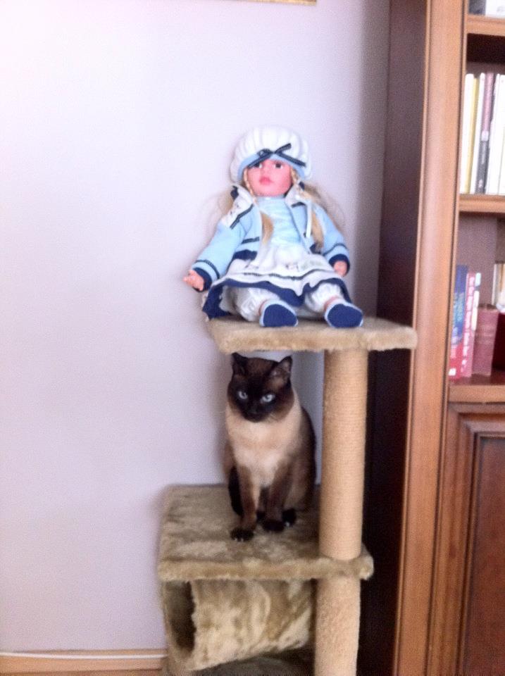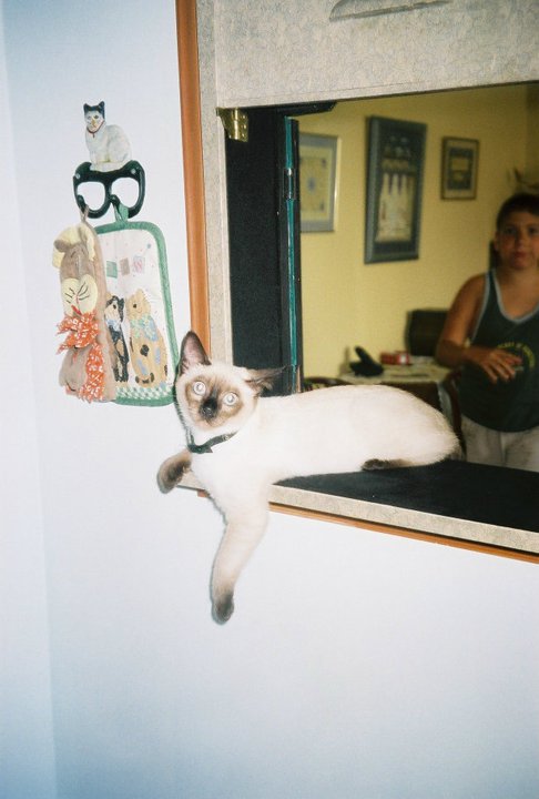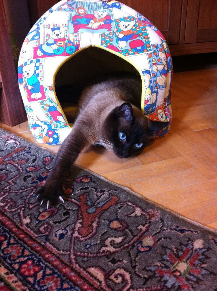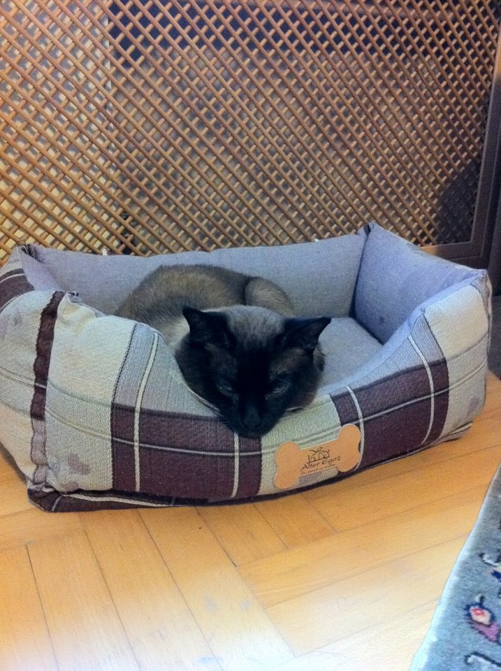 Miço bir akrabamızın arkadaşının siyam kedisinin yavrularından biriydi. Sanırım annesinden çok babasına benziyordu. Seal Point bir siyamdı. 2002 yılında tiroid tedavisi olduğumda yavrulardan birisini almak söz konusu oldu. Hayatından kedi eksik olmayan ben şiddetle karşı çıktım. Bir önceki kedim, binlerce kez tembih etmeme karşın balkon penceresini açık bırakan temizliğe gelen hanım yüzünden kuş kovalamak için pencere pervazına çıkmış, dengesini kaybederek 6. kattan kötü bir biçimde düşüp ölmüştü. Bir yaşındaki tekirimi okuldan eve gelince yerde bulmuş, veterinere götürüp kurtaramamıştım. Günlerce okulda, derslerde, öğretmen odalarında, her yerde avaz avaz ağladığımı, o çok ünlü “Allah’ın gücüne gidecek “lafını farklı kişilerden duyduğumu anımsıyorum. Hiç de sevmediğim bir sözdür. Bir kediye bile mukayyet olamadım, bir daha asla kedi filan almam diye düşünüyordum. Ama Burak çok ısrar etti. “Anne ne olur bu kediyi alalım, bak bana da arkadaş olur.” dedi. O sıralar radyoaktif iyot aldığımdan yavruyu hemen alamadık. Ama gidip görüp seçmiştik. Hatta sahibi oje ile işaretlemiş, diğer ikisiyle karışmasını engellemişti. Minik siyamımız artık annesinin sabrı taşıp onu dövmeye başladıktan sonra, benim de millete radyasyon bulaştırma riskim kalktıktan sonra geldi evimize. İlk fotoğrafını annesiyle yan yana yattığında doğduğu evde çekmiştik.