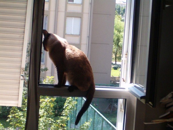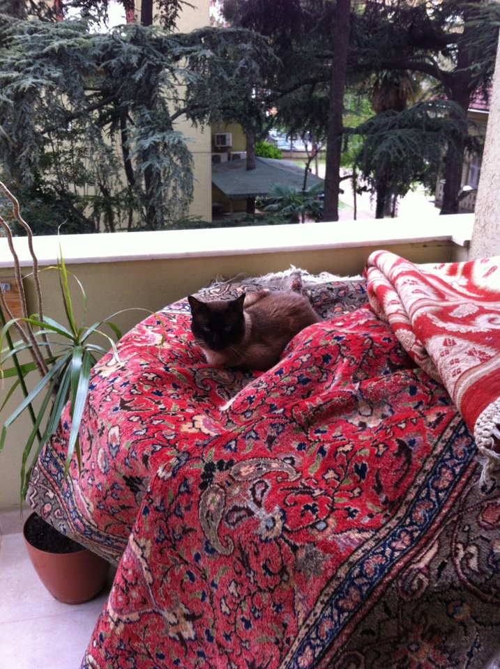 Miço dışarıyı izlemeyi, açık havaya çıkmayı, tehlikeli de olsa pencere dışında oturmayı hep sevdi. Ben de ciyak ciyak “İn oğlum oradan, düşeceksin şimdi !” diye vızıldamayı hiç bırakmadım. Bizimkiler “Bırak hayvanı bir nefes alsın.”dediler durdular. şehirdeki evimizde kargalar kedilere saldırıyor diye, onun balkonda olduğu saatleri onunla birlikte geçirdiğimi bilirim. Miço sağlığına çok düşkündü ve kediler kendileri için yararlı her şeyi biliyorlar. Hiç güneşin dik olduğu öğle saatlerinde dışarıda olmadı örneğin, midesi bozulduğunda yemeyi kesip midesini dinlendirdi, kabız olduğunda ot yedi. Kediler böyledir.