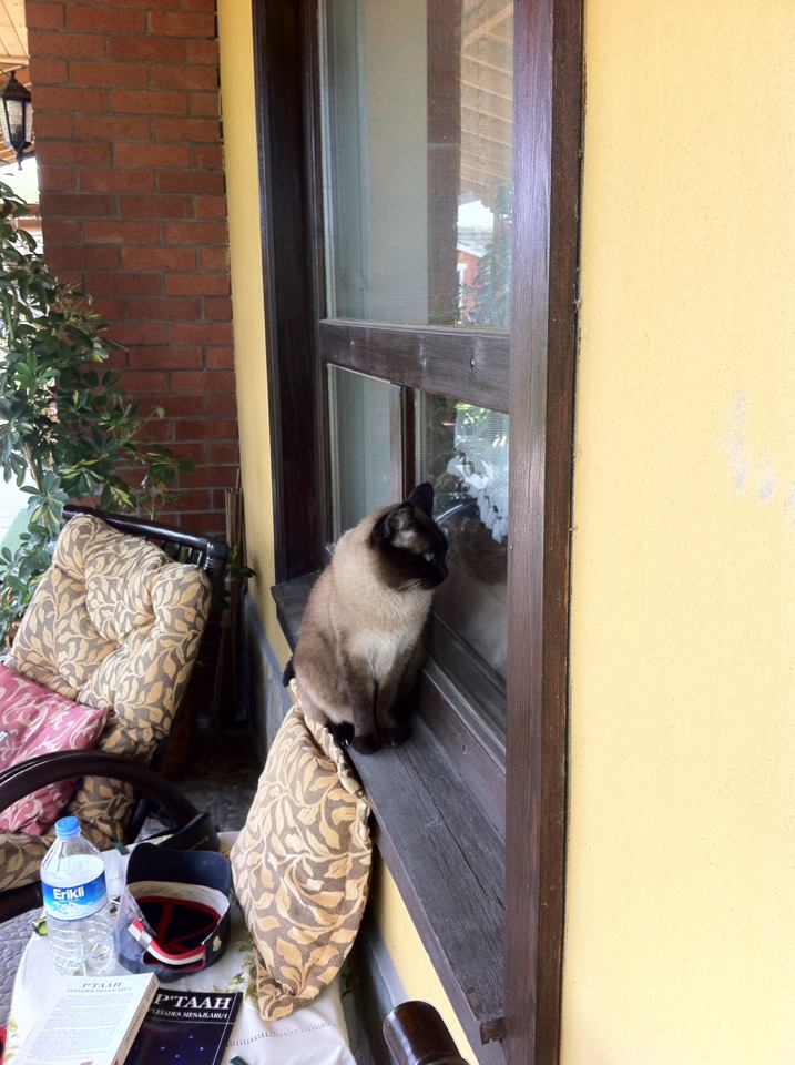 Miço ilk geldiğinde sabahları ilacımı almam için erkenden beni uyandırırdı. Sonra bir gün 3-4 günlüğüne Asos’a gitmeye karar verdik ve Miço’yu da anneme bıraktık. Tamiratta olan yollar nedeniyle 8 saatte Asos’a ulaştıktan sonra annem telefon etti ve Miço’nun pencere telinden çıkıp kaçtığını , bulamadıklarını söyledi. Apar topar geri döndük. Kızkardeşim ertesi gün İngiltere’ye gidecekti. Bavulunu bile toplamadan Miço’yu aramaya koyulmuş. Bakmadıkları yer kalmamış. Hava kararırken anneme ulaştık. Burak arabadan indi ve Miço diye seslendi. İki dakika sonra bahçede yığılı odun yığınının arkasından çıkıp yanımıza geldi. Eve girdik, yüzüme bakmıyor. Yalana yalana geçti oturdu, ama göz teması yapmıyor. Sonraki bir hafta dil döktüm, yüzüme bile bakmadı. Bir hafta sonra ilişkimiz biraz yumuşadı, ama ondan sonra erken kalkıp da ilacımı almam için uyandırmadı.