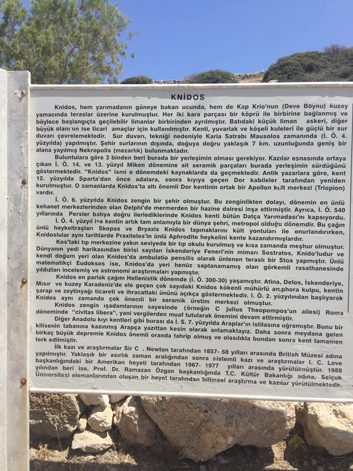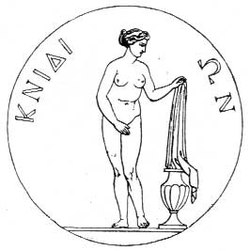 Son gün Knidos’a uğradık, hem gezdik hem de denize girdik. Knidos Rodos Birliği’ne bağlı olup, Datça Yarımadası’nın en uç kısmında, Ege ve Akdeniz’in birleştiği noktada, Tekir Burnu üzerinde konumlanmasıyla Batı Anadolu kıyı kentlerinin en önemlilerinden biriymiş. Tarihinin MÖ 12. yüzyıla dayandığı söyleniyor. M.Ö 4. yyda bir metropole dönüşmüş. Şarap ihracatı sayesinde gelişmiş. Kentin askeri ve ticari iki limanı varmış. Tarihçi Herodot Knidos’u Lakedaimonlu göçmenlerin kurduğunu söyler. Astronomi ve matematik bilimcisi Eudoksus, Doktor Euryphon, ressam Polygnotos ve İskenderiye Feneri’nin mimarı Sostratos burada yaşamışlar. Eudoksus’un güneş saati de halen burada. MÖ 600-700 yıllarına bölge nüfusu 80-120.000 kişiye ulaşmış.Dor ve Apollon tapınağı, Yuvarlak tapınak ve sunağı, Korint Tapınağı, Dionysos Tapınağı, Demeter Kutsal Alanı, Odeon ( 4500 kişilik konser salonu ) Meclis Binası, iki ayrı tiyatro ( girişte 10 bin kişilik, yukarıda 20 bin kişilik olmak üzere ), Yamaç evleri, Nekropol ( Mezar odaları ), Akrapol ( Şehrin siyasi merkezi ) Kap Krio yarımadası ören yerindeki önemli yerlerden. İlk çıplak heykel olarak bilinen Afrodit heykeli Knidos’u dünyaca meşhur edenlerden. Heykelin kaidesi duruyor. Kendisi ise bulunamamış. Atinalı heykeltraş Praxiteles’in eseri olan Afrodit heykelinin bir sikkede bulunan resmi ise aşağıda. Sonra da benim Knidos’ta çektiğim fotoğraflar.