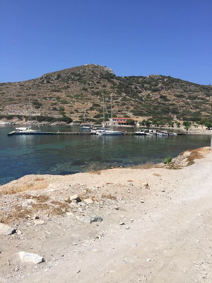 Akşam Liman Restaurant’ta bademli levrek balığı yedik. Buraların özel yemeğiymiş. Sonra da uzun bir yürüyüşe çıktık. Aslında gelir gelmez denize girebilirdik, ama eşyalarımızı yerleştirip azıcık uzanmayı tercih ettik.